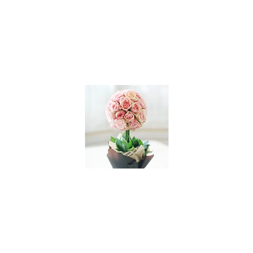 용기는 포장지로 데코하고 피치 컬러의 미니 장미 한종류로 사랑스럽고 귀엽게 연출했어요.